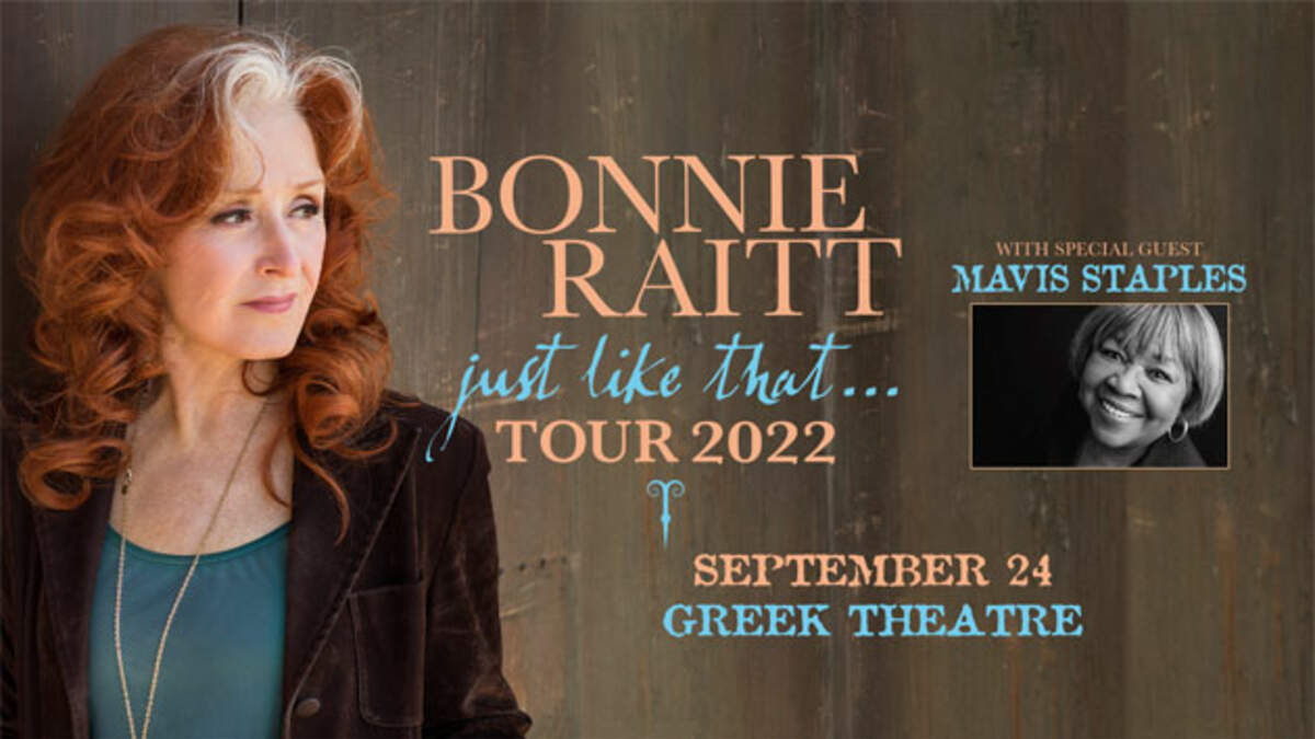 See Bonnie Raitt plus special guest Mavis Staples at the Greek Theatre on Saturday, September 24.